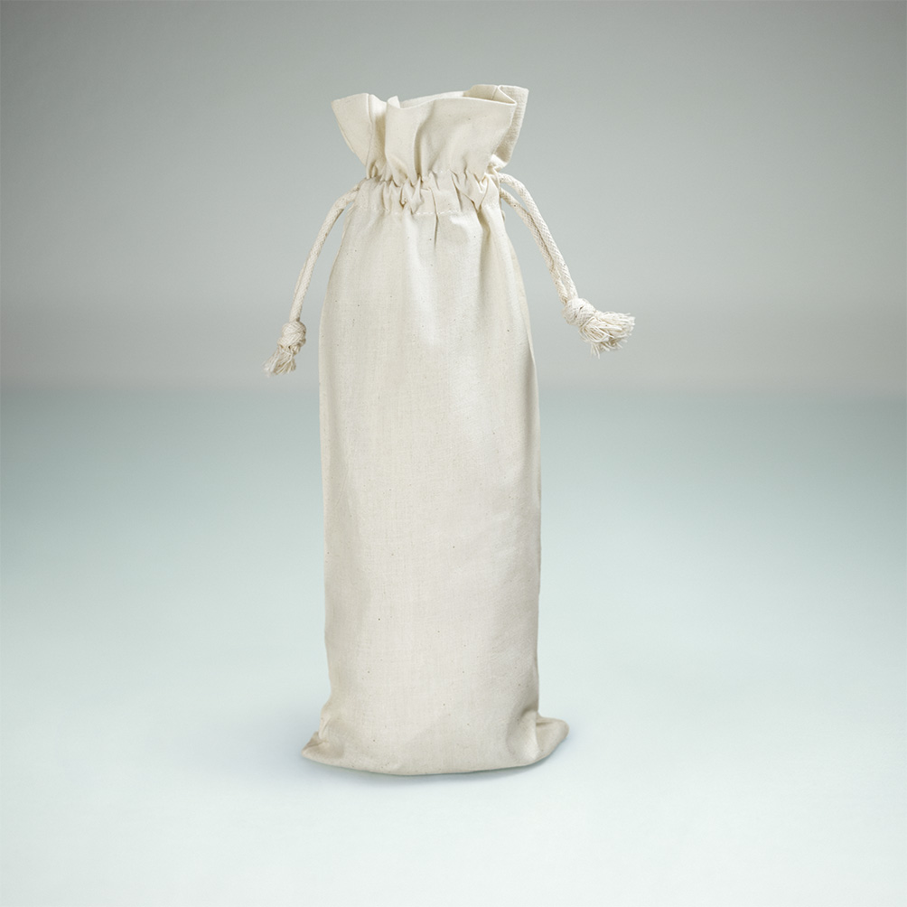 Dit wijnfles zakje is gemaakt van gecertificeerd organisch katoen. Deze duurzame stof past perfect bij bijvoorbeeld een biologische of fair trade wijn of champagne.